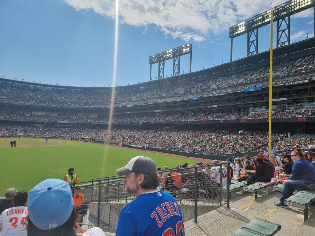 Walked back to Club Quarters and then walked about 25 minutes to Oracle Park to see the SF Giants play Chicago Cubs in baseball. Our seats were in the bleachers and were great for a panoramic view of the ball park.
