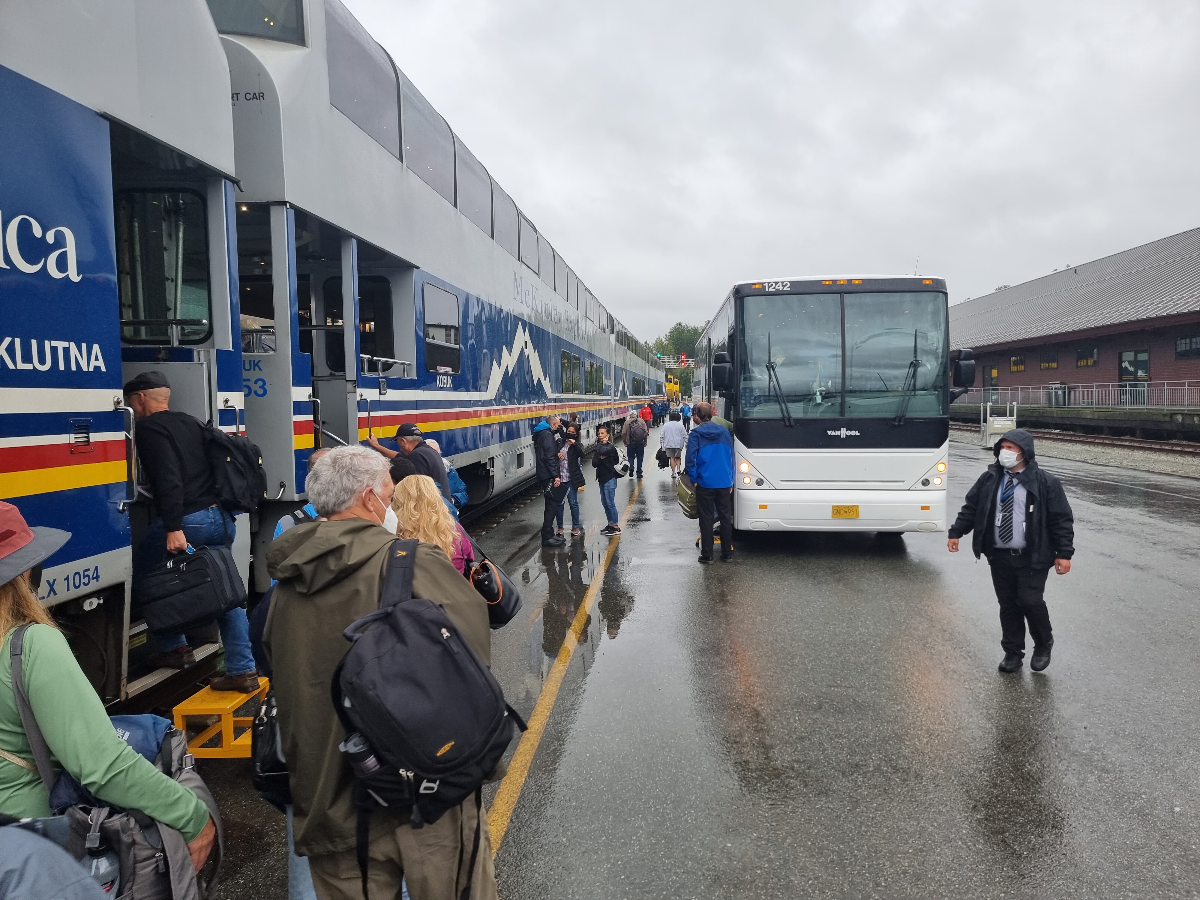 Arrived Denali Railway Station and then coached to McKinley Chalet where we went immediately and got a full Covid test which was thankfully negative.